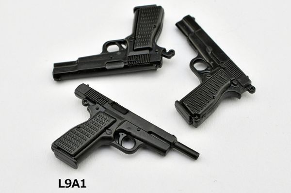 初期のM1935、英連邦で採用されたL9A1、最終モデルのMark3の3タイプを1/12スケール化。ストックホルスター仕様も選択式で再現可能。形態違いの10挺セットです。