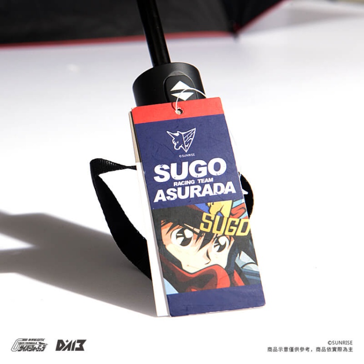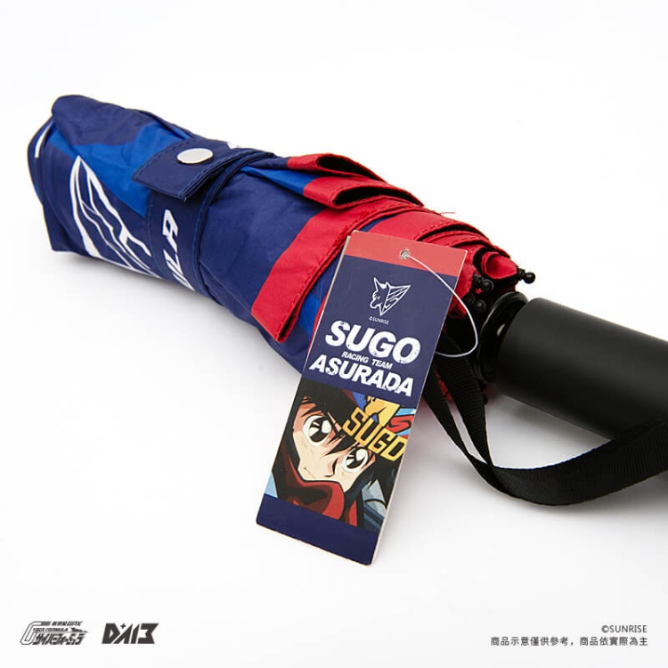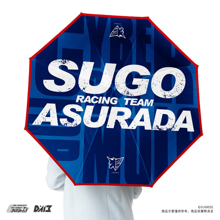 一鍵自動開收傘,搭配SUGO車隊經典藍紅配色與隊徽設計,輕巧易攜,兼具潮流感與冠軍榮耀,隨時展現你的熱血態度!