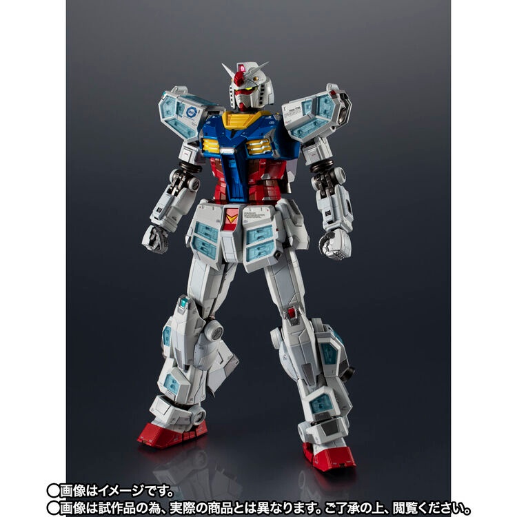 「超合金 RX-78F00/E 鋼彈」基於過去推出的橫濱版 RX-78F00 修改而來,運用新規零件再現肩甲、裙甲、腿部等處特徵的裝甲造型,並且太陽能板使用透明零件呈現,能透視內部細節構造。全機多處施以金屬色塗裝表現厚重質感,部分骨架零件也採用合金材質製作。上半身更內藏 LED 燈發光機構,打開電源後便能讓頭部攝影機、胸部散熱口發光。