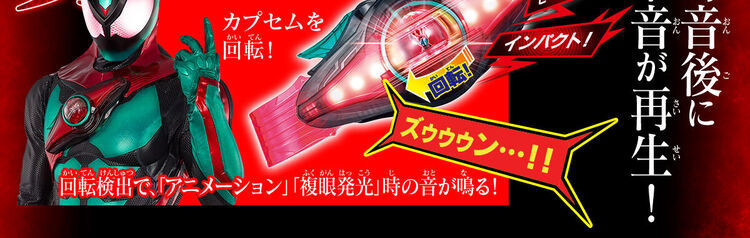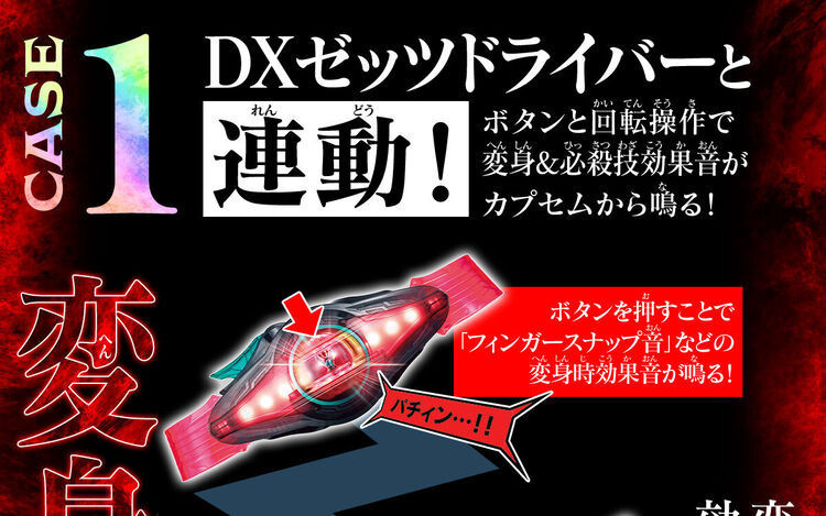 本商品は通常DX版同様に、別売りの「DXゼッツドライバー」と連動が可能。ドライバーにカプセムをセットして回転させることで、ドライバーから鳴る変身音に合わせてカプセムから追加効果音が発動します。さらに必殺技操作時も、必殺技後の追加効果音が発動します。