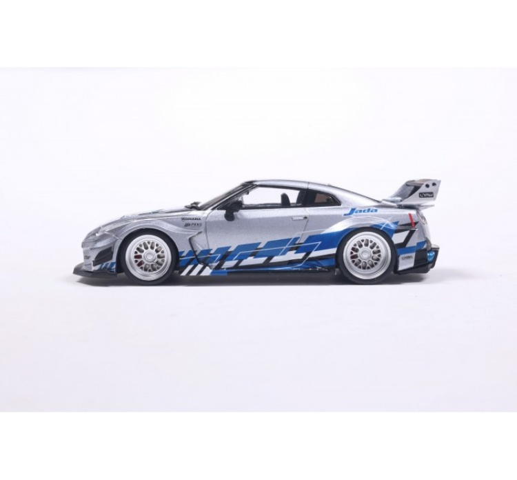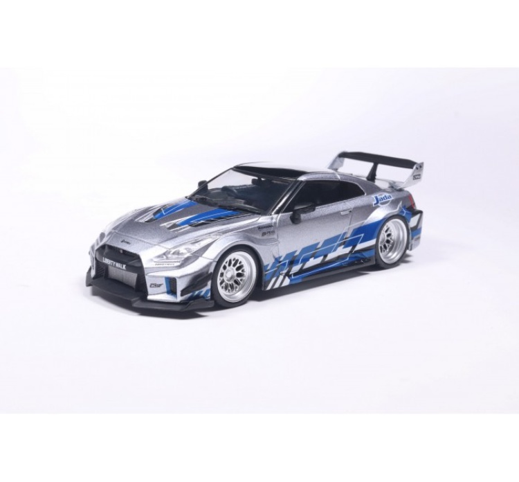 1/43 日產 NISSAN GT-R (R35) LIBERTY WALK SILHOUETTE SILVER AND BLUE STRIPES 2020 S4311211