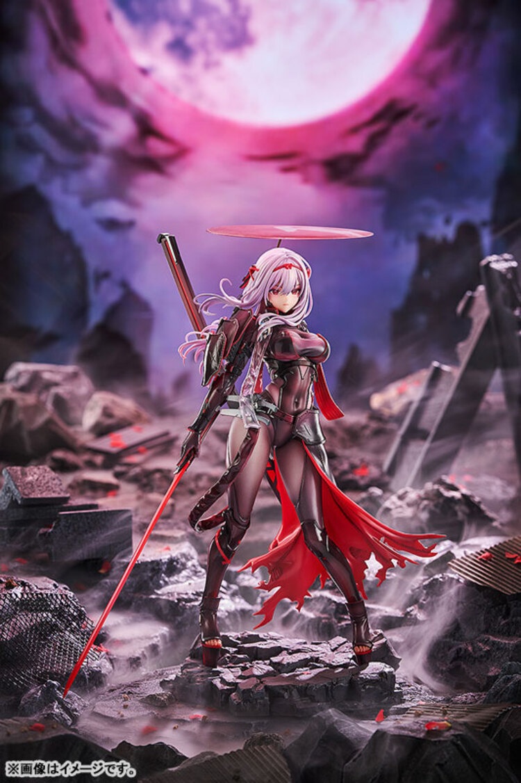 出自人氣手機遊戲《勝利女神:妮姬》,「紅蓮:暗影」化身為1/7比例模型登場!以黑色和紅色為基礎的戰鬥套裝,透過細膩的塗裝,精緻表現出裝甲的質感和布料的對比,散發出冷酷且具壓倒性的存在感。隨風飄舞的披風和銳利武器的造型,更襯托出她凜然的姿態。裝甲的標誌也忠實重現插畫的色彩表現,並重現從內側隱約透出的紅色光芒效果。另外,作為豪華規格還附上「害羞臉」和「瘋狂臉」的替換用表情零件。展現出多樣化的魅力,能以喜好的風格盡情展示。敬請將這位冷酷又帥氣的「紅蓮:暗影」迎接到指揮官身邊吧!