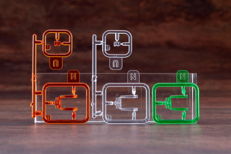 ・頭部コックピットのクリアーパーツはクリアーグリーン、クリアーオレンジに加え無色クリアー成型のものが追加。