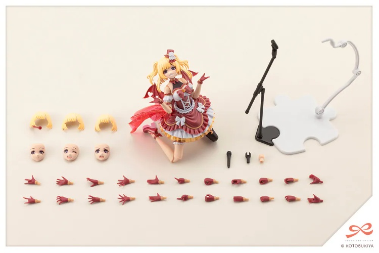 かわいい振り付けをプラモデルで再現できるように、肩の引き出し関節や前後左右に動かせる首ジョイント、膝の二重関節など可動にこだわって製作されています。