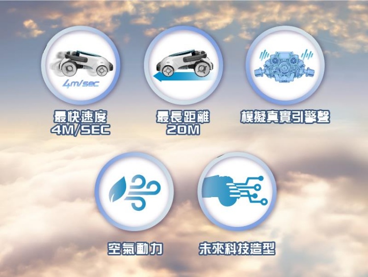 造型科技感的超跑,使用空氣動力奔馳,打氣汽缸與車子融為一體,輕巧方便攜帶到各處玩!最多可打氣14下,最快速度每秒4米,最長距離可跑到20米!還可以將超跑裝飾彩繪成自己喜愛的模樣!