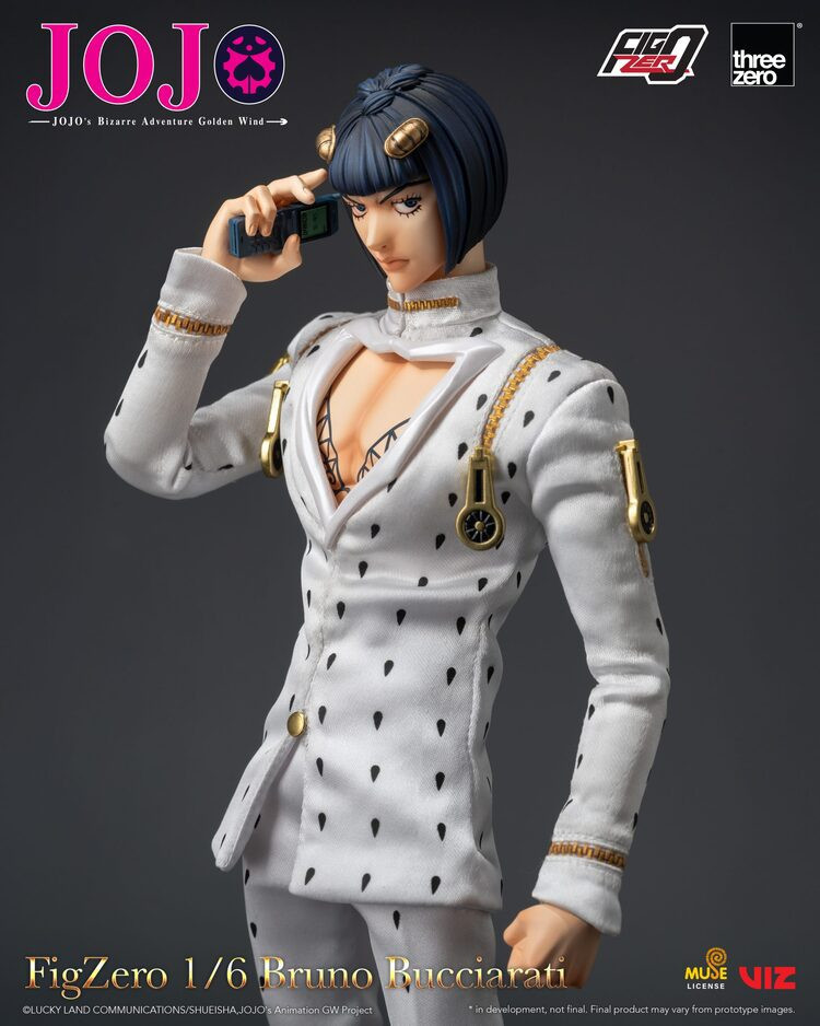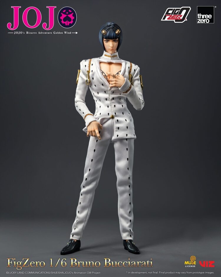 來自電視動畫《JOJO的奇妙冒險 黃金之風》,FigZero 1/6 布魯諾·布加拉提隆重登場!人偶全高約30.8 cm,素體為全新開發並內置約33處可動關節,輕鬆駕馭經典姿勢。由日本模型師 MICHIRU imai擔任頭雕製作及樣辦頭雕上色,精準還原神韻,配備可動眼球,可細調視線更顯生動。人偶搭載精緻布製服裝(不可脫),質感出眾。