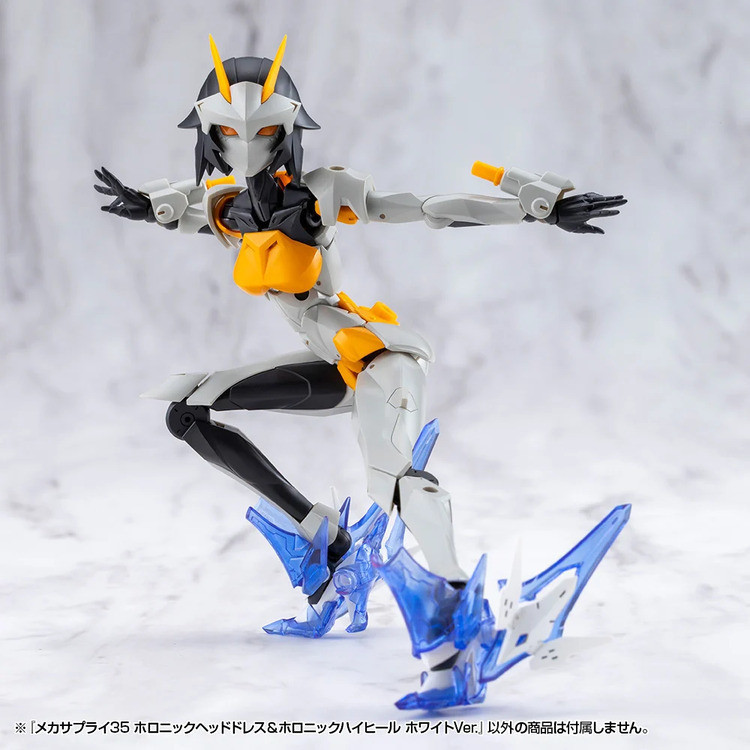 ■美少女キャラクターモデル向けの改造パーツ、「ホロニックヘッドドレス」と「ホロニックハイヒール」のセットです。それぞれクリアーパーツを効果的にあしらい、キャラクターの頭部と足元を美しくスタイリッシュに演出します。