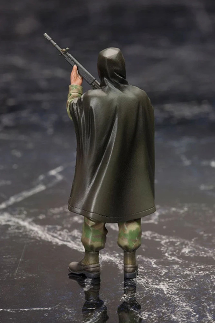 立ち姿、走り姿、しゃがみ姿のスネーク、スカルフェイス、チコ、海兵隊員(通常Ver.とポンチョ着用Ver.の2種)、それぞれのフィギュアが封入されています。
