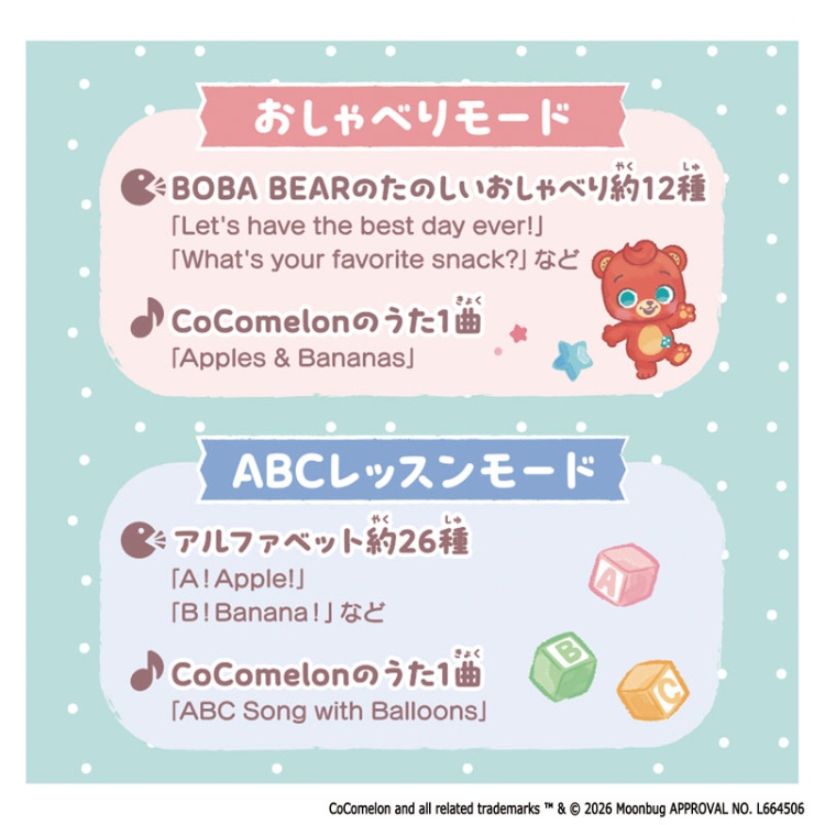 「CoComelon Playdates」より主人公JJの親友“BOBA BEAR”のおしゃべりぬいぐるみが登場です。