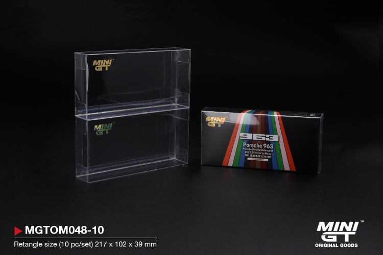 こちらは最大4台セット収納可能なセット商品に使われている長方形タイプで、お手持ちのMINI GTを保護できるケースとなっております。