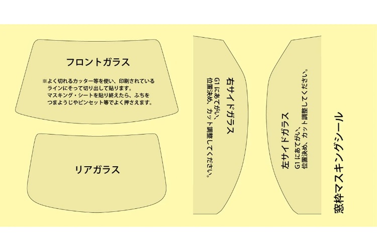 ・内装窓枠の塗装再現用にマスキングシールが付属。塗装時にカットして使用します。