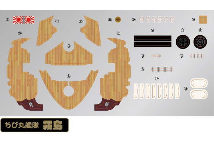 シールには木甲板、菊花紋章、応急舵、艦橋窓、探照灯などを収録。