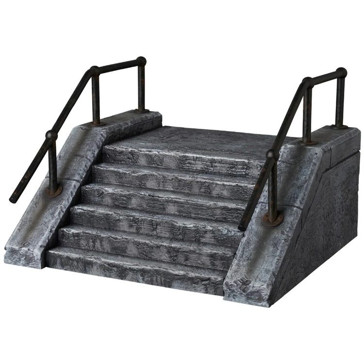 ●附贈 5 種頭部零件 / 樓梯情境底座 / 替換用西裝外套 / 坐姿用下半身零件 / 花束 / 小丑面具 / 手槍 / 筆記本(Joke Note)/ 椅子零件 / 可動式人偶支架!