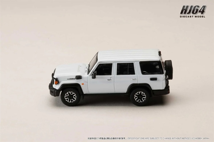 Toyota LAND CRUISER 70 (GDJ76W) 2023 年加入 Hobby Japan 1/64 比例合金模型系列「HJ64」!真車是一款越野 SUV/旅行車,重新將豐田 70 系列 Land Cruiser 引入日本國內市場,以其卓越的耐用性和越野性能而聞名。線條流暢、堅固耐用的設計展現了其出色的越野性能和極高的實用性。這款模型車在對真車進行深入研究後製作而成,包括車身顏色和配置等細節都力求還原。它配備透明展示盒和底座,是任何收藏的理想選擇。