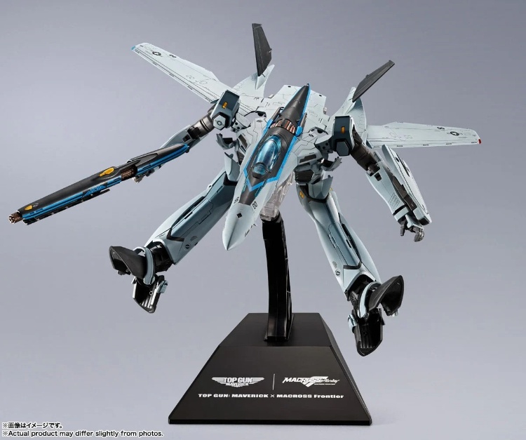 身披《捍衛戰士:獨行俠》主角——獨行俠(Maverick)愛機配色塗裝的 VF-25 在此誕生!在機器人(Battroid)形態時,頭部設計特別融入了飛行員頭盔的造型意匠。除了附贈可供三種形態展示的專用底座外,還追加了印有紀念標誌的「特別版底座」。該特別底座可供戰機形態(Fighter)與半人半機形態(Gerwalk)進行展示。