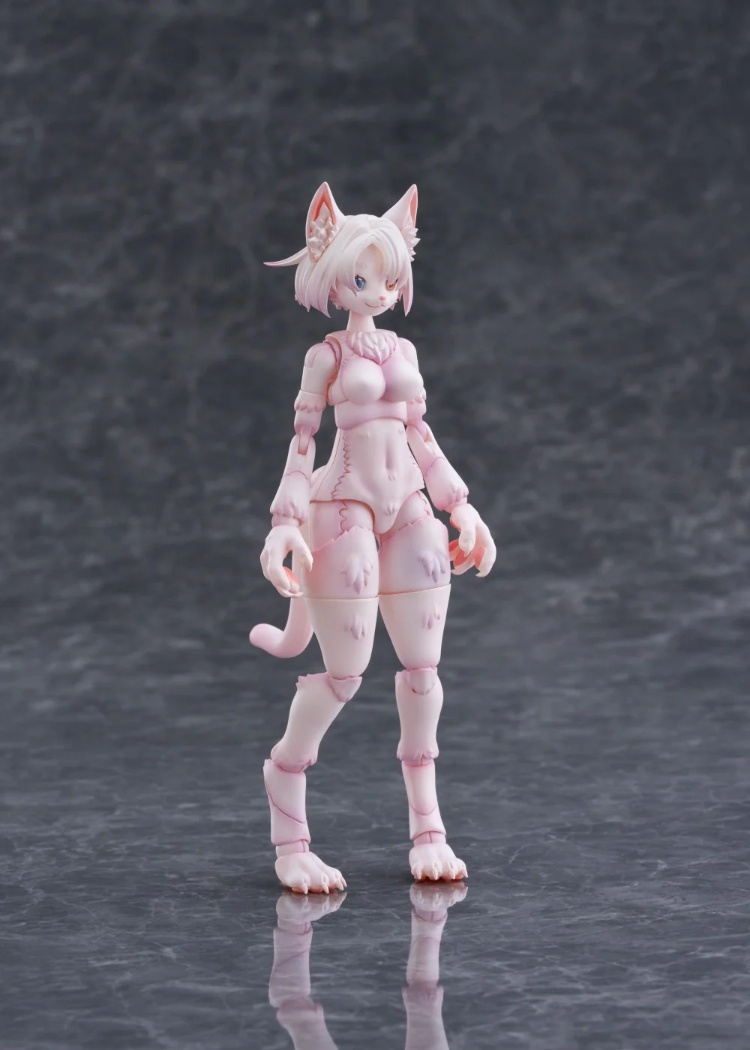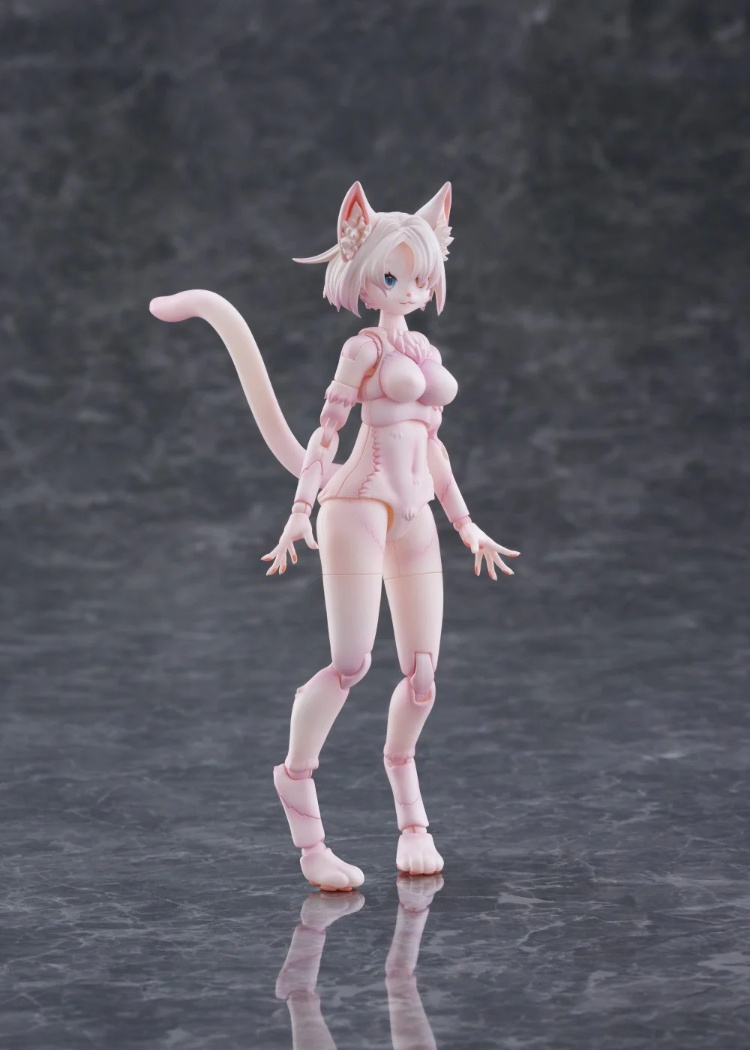 「Kemopla」是一款可自訂的塑膠模型套件,讓您能夠打造屬於自己的毛茸茸角色。 「Kemo」的「比例」(毛茸茸與人類元素的比例)和毛茸茸的類型可以透過更換零件自由調整。毛茸茸角色獨特的輪廓和豐富的組合方式,讓您盡情享受獨一無二的世界,重現您理想中的角色。泰國貓(Khao Manee)是泰國特有的貓科動物,以其純白的皮毛(有時被稱為“白色寶石”)和美麗的異色眼睛而聞名。身體採用純白色注塑成型,從瀏海間探出的高貴眼睛是異色的,一隻眼睛是藍色,一隻眼睛是黃色。