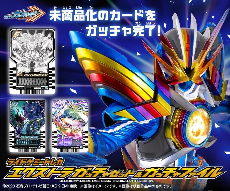 來自《假面騎士 Gotchard》系列,我們隆重推出「Ride Chemy Card:Extra Gotcha Set & Gotcha File」——這是一套匯集了劇中登場卻從未商品化的卡片,以及尚未推出「SR」(超級稀有)等級版本的卡片的特別收藏套裝。本套裝共包含36張紙質卡片-其中包括13張先前未發售的新卡及23張SR卡-並附帶一本全新設計的9格卡冊,即「Gotcha File」。