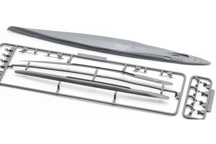 零件採灰色成型,防止剪裁時損壞。九五式水偵連浮筒與上翼皆拆解為獨立零件,精密度極高。