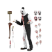 配件內容:包含多個可替換的頭雕(不同表情)、多對可替換手型,以及一系列沾滿血跡的標誌性武器(如鋸子、斧頭、刀具等)。